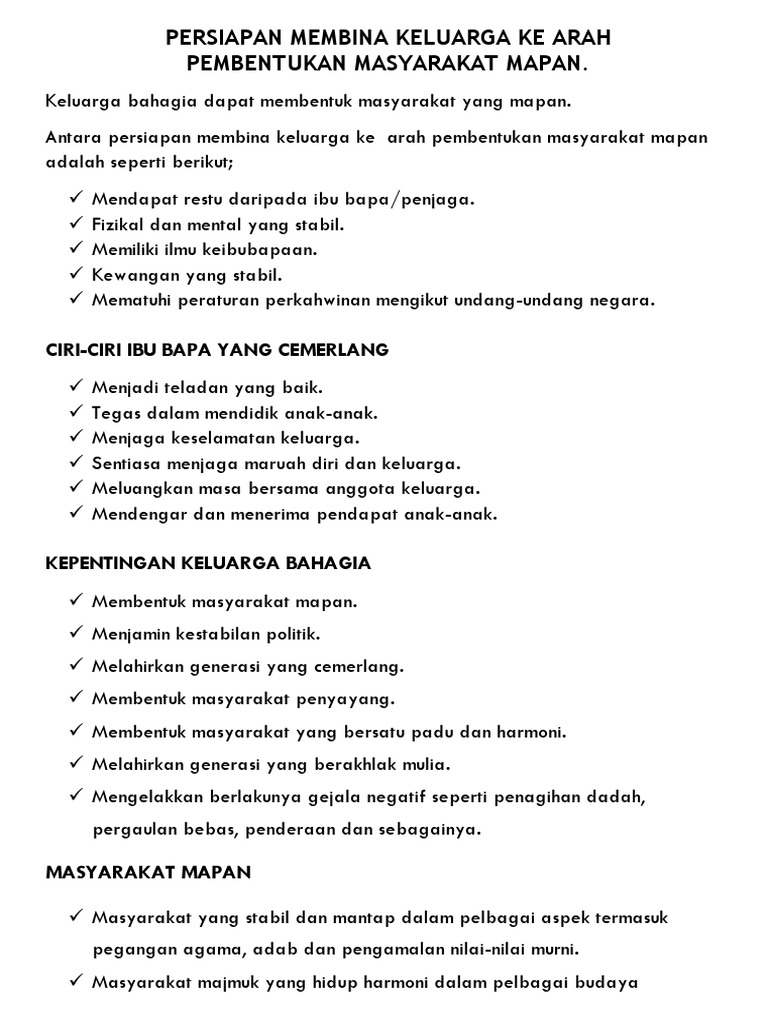 Keluarga tentunya tidak terdiri dari satu individu saja jadi Anda dan pasangan harus saling bahu membahu untuk mencapai kondisi keluarga yang harmonis. Keluarga Sejahtera Tahap 1. By Aishah Jaman 2 years ago.